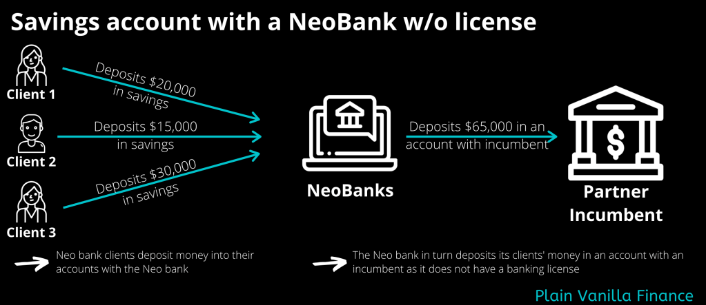 Neo banks are fully digital banks that have no physical presence. They connect with customers via mobile apps and web platforms. Depending on what license (or lack thereof) they possess, Neo banks provide a range of services – traditional banking services such as current account, savings account, different loans, money transfers and tech-enabled services such as API linking, analytics, mobile apps. Neo banks may also partner with an incumbent to make up for lack of license as shown in figure 1.